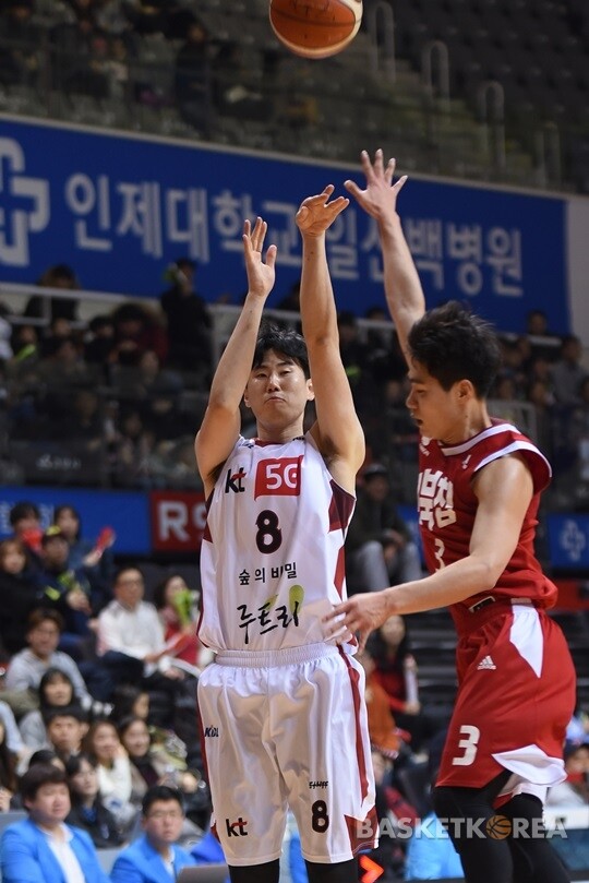 KT에서는 외국선수들이 제 몫을 했다. 데이비드 로건이 양 팀 통틀어 가장 많은 33점을 퍼부었다. 3점슛을 다수 곁들이면서 공격을 주도한 그는 8리바운드 9어시스트를 올리면서 이날 코트를 접수했다. 이어 마커스 랜드리와 김민욱이 지원에 나서면서 KT가 DB를 가까스로 꺾을 수 있었다.