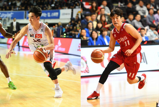 | 부산 KT의 김윤태(좌), 고양 오리온의 허일영(우) |