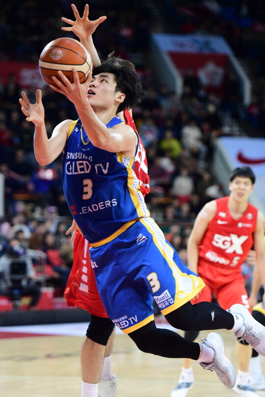 [바스켓코리아 = 잠실학생/김우석 기자] 삼성의 미래 천기범이 인상적인 활약으로 팀 승리를 이끌었다.