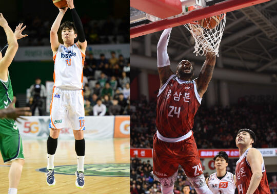 | 인천 전자랜드의 강상재(좌), 안양 KGC의 레이션 테리(우) |