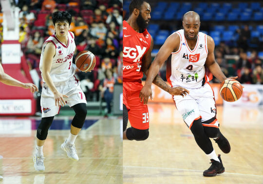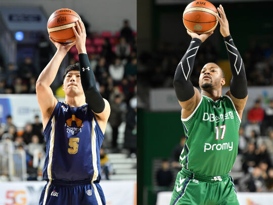 | 전주 KCC의 이정현(좌), 원주 DB의 포스터(우) |