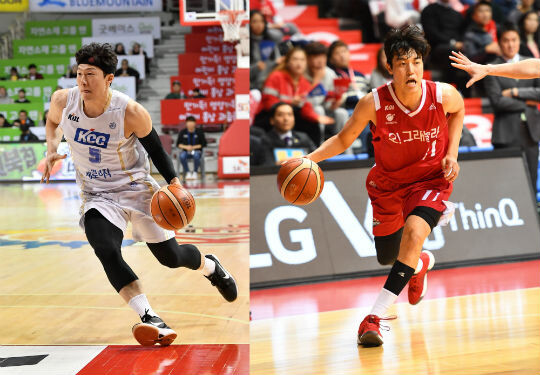| 전주 KCC의 이정현(좌), 고양 오리온의 허일영(우) |