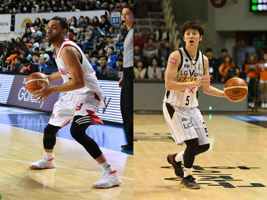 | 고양 오리온의 제이슨 시거스(왼쪽), 창원 LG의 김시래(오른쪽) |
