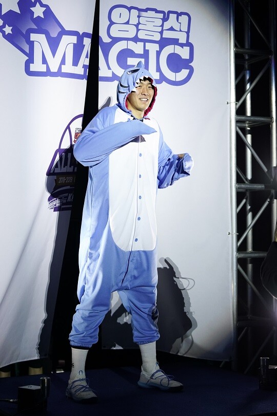 뒤이어 등장한 양홍석은 인기 동요 '상어 가족'에 맞추어 깜찍한 율동을 선보였다. 상어 잠옷까지 입고 나오면서 팬들의 흐뭇한 미소를 유발했다.