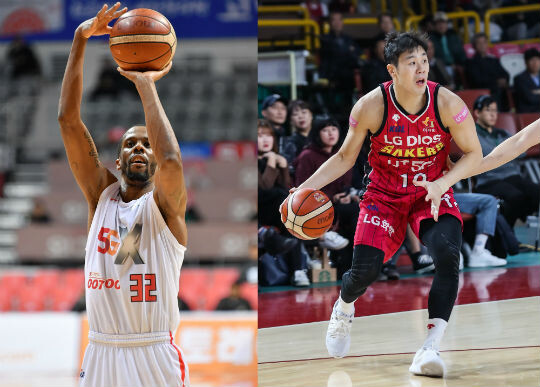 | SK의 애런 헤인즈(왼쪽), LG의 조성민(오른쪽) |