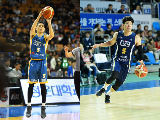 | 서울 삼성의 이관희(왼쪽), 전주 KCC의 이정현(오른쪽) |