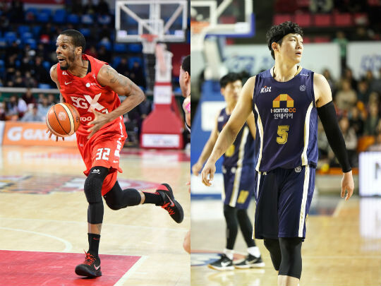 | 서울 SK의 애런 헤인즈(왼쪽), 전주 KCC의 이정현(오른쪽) |