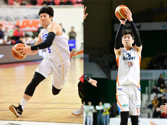 | KCC의 이정현(왼쪽), 전자랜드의 강상재(오른쪽) |