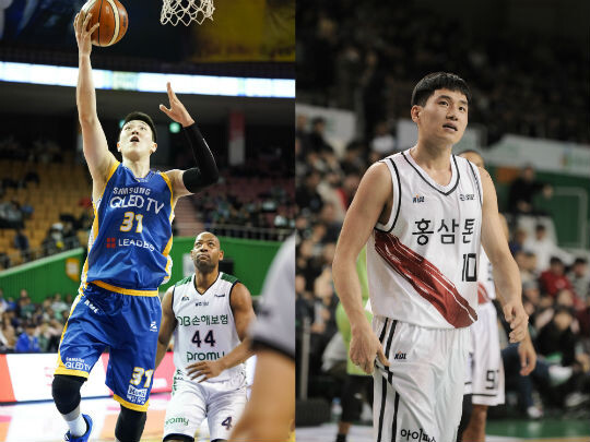 | 삼성의 김준일(왼쪽), KGC의 문성곤(오른쪽) |
