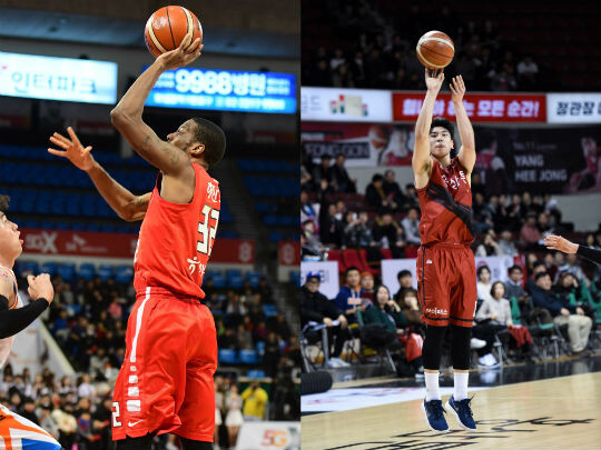 | 서울 SK의 헤인즈(왼쪽), 안양 KGC의 변준형(오른쪽) |