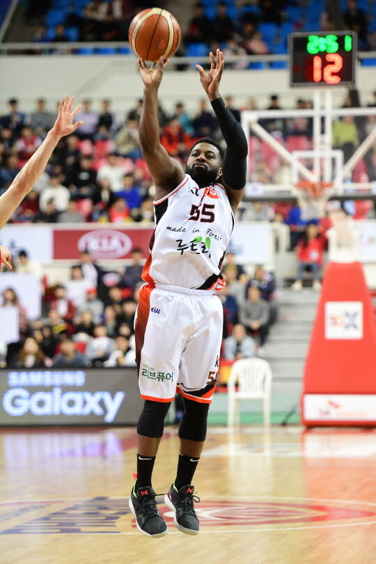 현재 KT 상황에서 덴트몬 활약은 필수적이다. 그들의 시스템이 되어버린 3점슛 농구의 핵심 자원이다. 이날 KT가 전반전 그나마 선전을 펼칠 수 있었던 원동력이 되어준 덴트몬이었다.