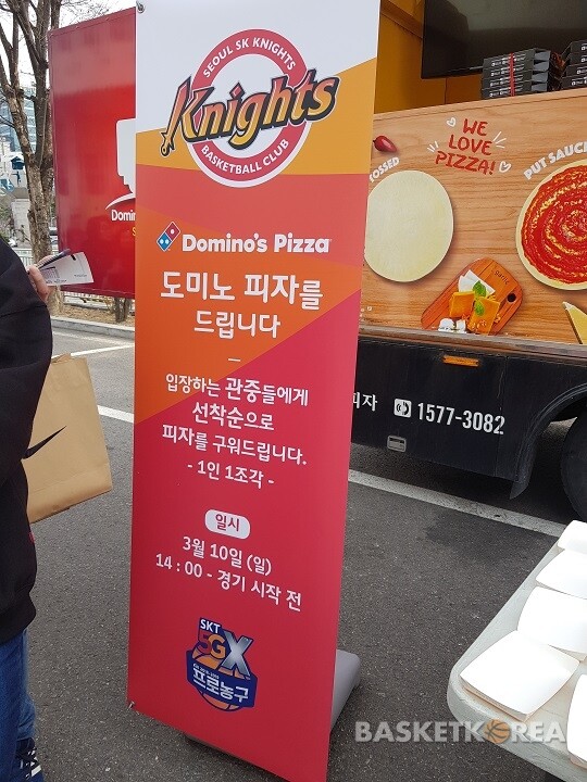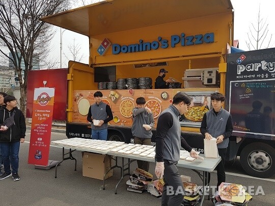 SK와 도미노피자는 경기 시작 1시간 10분 전인 오후 1시 50분부터 경기장을 찾은 팬들에게 파티카에서 직접 구운 따뜻한 피자를 나눠주었다.