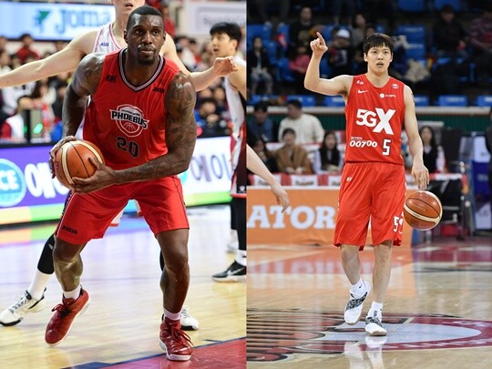 | 현대모비스의 라건아(왼쪽), SK의 김선형(오른쪽) |