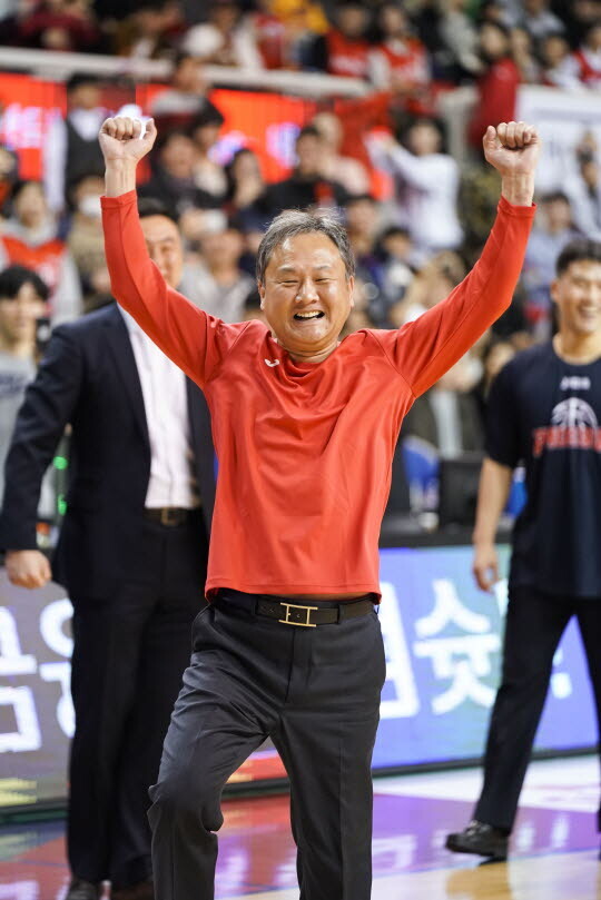 다음은 이대성. 연습으로 두 개를 시도했다. 모두 성공시켰다. 설전에 돌입했다. 7구 만에 두 개를 미스했다. 갑자기 유 감독이 골대 밑으로 뛰어 들었다. 이대성이 흔들렸다. 8구 째 던진 볼이 림 뒤쪽을 튕겨 나왔다. 승부가 끝나는 순간이었다. 관중들은 다시 환호했고, 유 감독은 멋진 하이파이브를 화답했다.