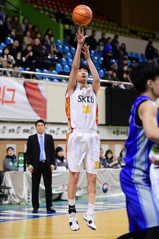 [바스켓코리아 = 행당/김준희 기자] 성균관대가 이윤수와 박준은을 비롯, 선수들의 고른 활약을 앞세워 한양대를 물리쳤다.