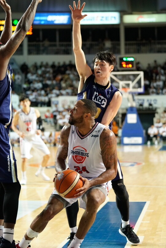 KCC는 전반 2점 성공률(60%-38%)과 리바운드(21-16)에서 우위를 점하며 44-36으로 8점차 앞선 채 후반을 시작했다. 이어진 3쿼터엔 턴오버를 거듭하며, 현대모비스에게 추격을 허용했다. 4쿼터에도 이대성의 3연속 3점슛에 고전했지만, 선수 전원이 고르게 활약하며 리드를 지켜냈다.