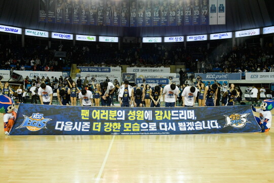 [바스켓코리아 = 전주/김아람 기자] 역전승 연출은 실패했지만, 감동을 선사한 KCC의 시즌이 마감됐다.