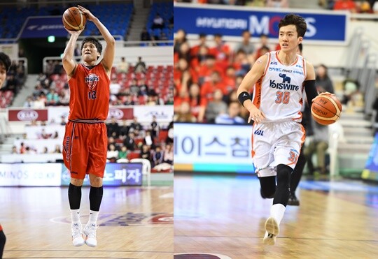 | 승부의 키를 쥐고 있는 울산 현대모비스의 함지훈(왼쪽)과 인천 전자랜드의 박찬희(오른쪽) |