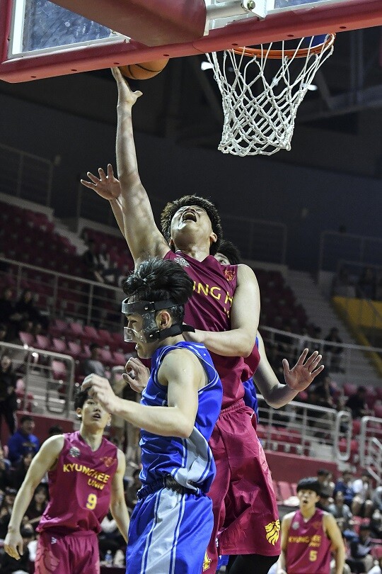 하지만 경희대도 이대로 물러서지 않았다. 김동준이 돌파에 이어 바스켓카운트를 얻어내면서 분위기를 끌어올렸다. 김준환도 세트 오펜스 상황에서 골밑 득점을 올리면서 10점 차까지 추격에 성공했다. 여기에 김동준의 와이드 오픈 3점슛까지 터지면서 점수 차는 7점 차, 경희대의 분위기는 화룡점정을 찍었다.