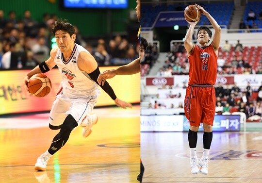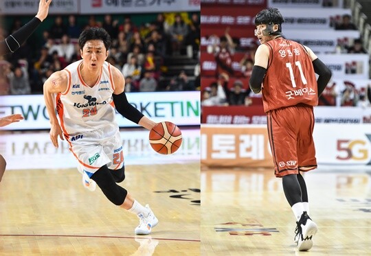 | 전자랜드의 정영삼(왼쪽), KGC인삼공사의 양희종(오른쪽) |