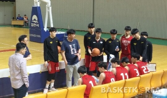 [바스켓코리아 = 김천실내/김우석 기자] 강력한 우승후보인 안양고가 이두원이 결장한 휘문고에 승리했다.