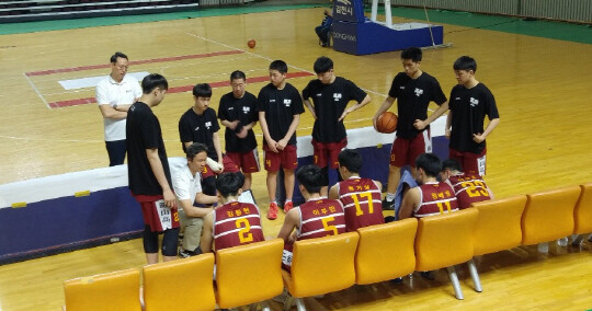 | 8강행 티켓을 수령한 용산고. 이세범 코치가 작전을 지시하고 있다. |