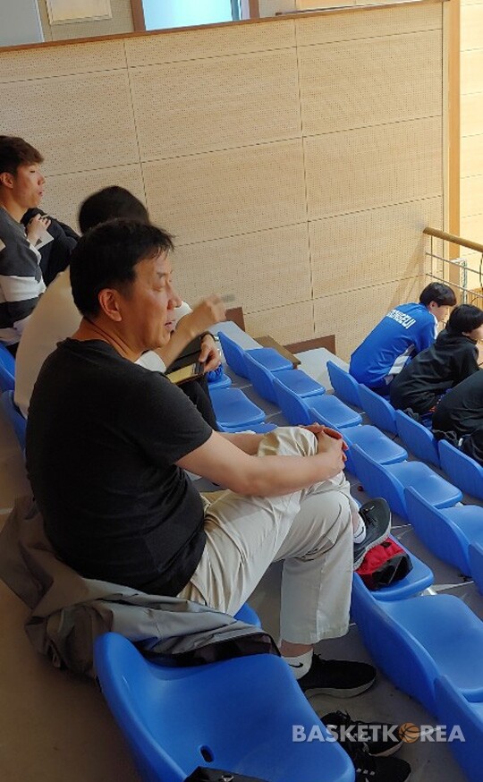 이훈재(52) 여자프로농구 KEB하나은행 감독도 마찬가지였다. 이훈재 감독은 이시준 코치와 함께 원석을 고르고 있었다. 이훈재 감독의 눈빛은 더욱 날카로웠다. 여자농구를 처음 경험하기에, 여자 고등부 선수들을 더욱 집중해서 본 것.