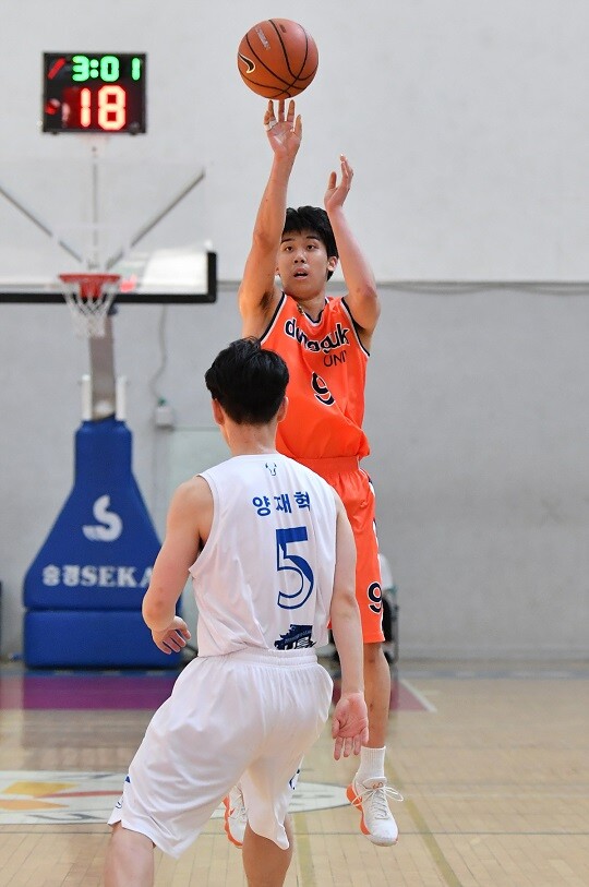 하지만 동국대의 선수층은 두꺼웠다. 1학년 유진과 김승협이 내외곽에서 활약하면서 격차를 유지했다. 김형민과 정종현도 내외곽에서 점수를 올리면서 49-31로 18점 차로 앞선 채 전반을 마무리했다.