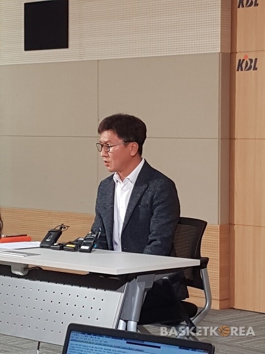 재정위원회 결과를 브리핑 중인 KBL 최준수 사무총장