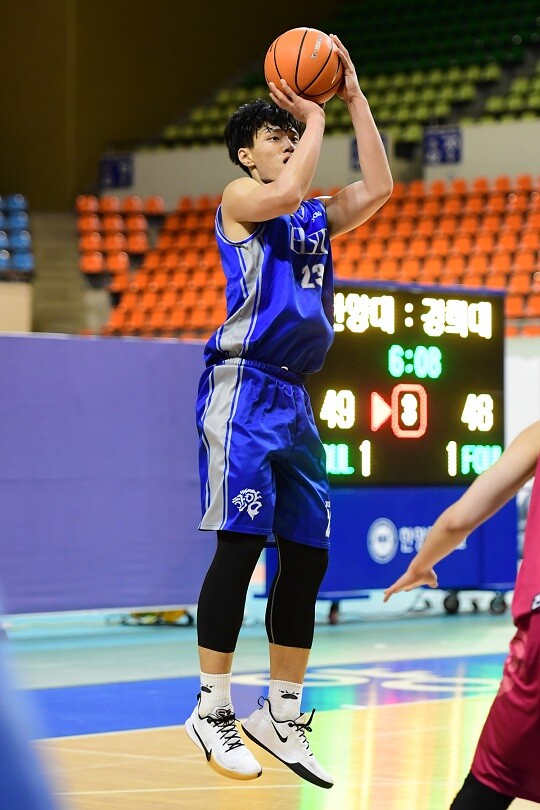 [바스켓코리아 = 행당/김준희 기자] “(이)상현이가 있긴 하지만 내가 센터로 뛰고 있다. 우리 팀이 신장이 낮기 때문에 최대한 상대 센터를 막아주고, 궂은 일을 하는 게 내 역할이라 생각한다.”