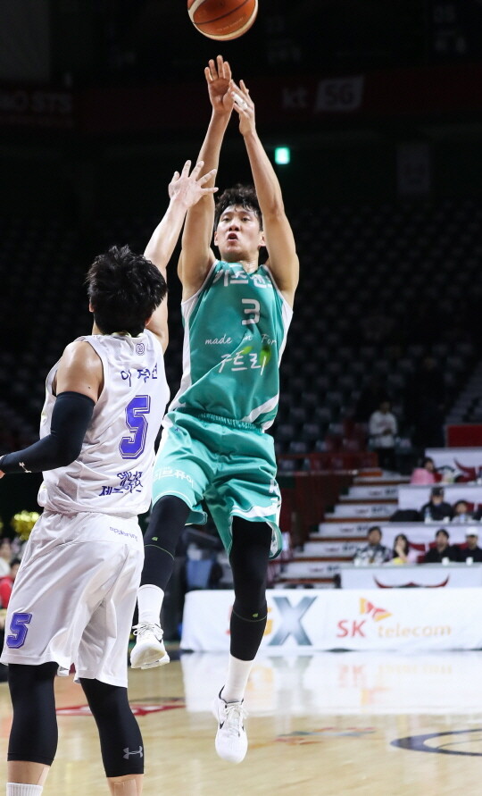 | 2015 KBL 신인 드래프트 전체 2순위인 한희원이 KBL 입성 5년 만에 유니폼을 세 번이나 갈아 입었다. |