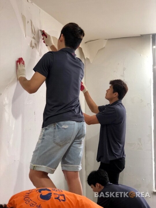 오전 9시에 집결한 선수단과 봉사단은 오전에 원내 2층 방 10개와 창고 등의 벽지 해체 작업과 짐 나르기 등을 실시했다. 작업 특성상 새 벽지와 장판은 전문가의 손길을 거쳤다.