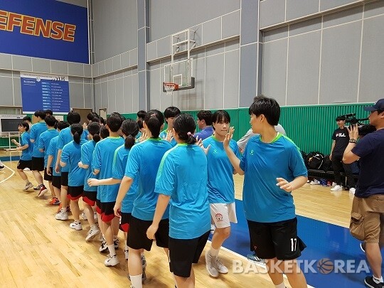 그 다음으로는 드리블 이후 레이업과 슛 등 응용 동작을 소화했다. 미숙한 선수도 있었지만, 선수들은 다함께 박수를 치며 격려했다. 굵은 땀방울과 함께 선수들 얼굴에는 웃음꽃이 피었다.