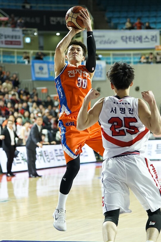 지난 시즌 전자랜드의 주전 포인트 가드로서 팀을 이끈 박찬희도 구슬땀을 흘리며 훈련을 소화하고 있었다.