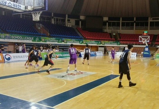 | 제일고와 KCC의 결승 장면. 제일고가 보라색 유니폼 |