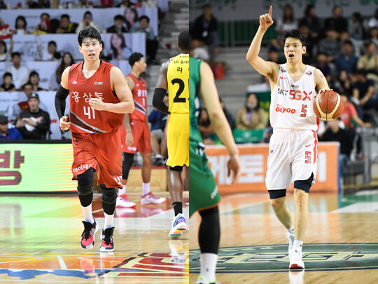 사진 설명 2 = 오세근(안양 KGC인삼공사, 왼쪽)-김선형(서울 SK, 오른쪽)