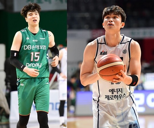| DB의 김종규(왼쪽)-KCC의 이대성(오른쪽) |