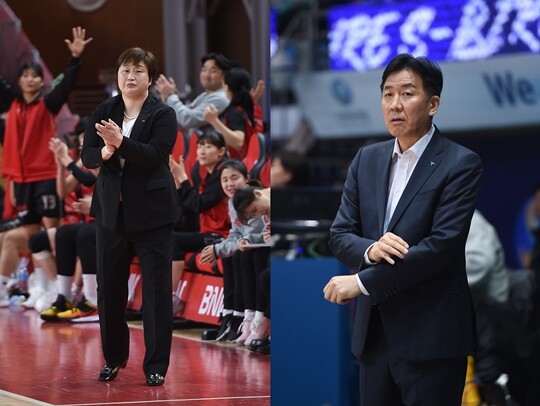 사진 설명 1 = 유영주 BNK 감독-이훈재 KEB하나은행 감독