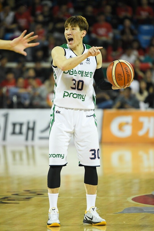 | 2017-2018시즌 DB 유니폼을 입고 뛰었던 두경민의 모습 |