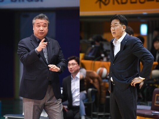 사진 설명 1 = 임근배 삼성생명 감독-이훈재 하나은행 감독