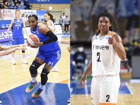 사진 설명 2 = 르샨다 그레이(아산 우리은행)-마이샤 하인스-알렌(부천 하나은행)