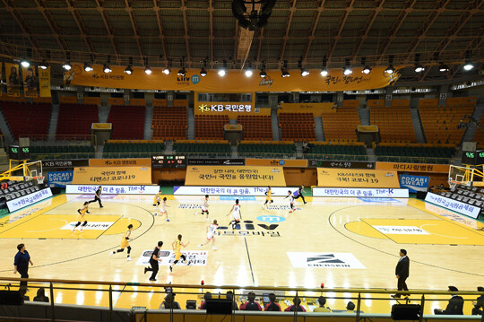 지난 5일 후. 청주 KB스타즈와 부산 BNK 썸의 경기가 열린 청주체육관. WKBL이 무관중 경기를 선언한 이후, 청주체육관은 처음으로 관중 없이 경기했다. 관중 없는 청주체육관은 한없이 적막했다. 청주는 뜨거운 농구 열기를 자랑하는 곳. 경기를 준비한 KB스타즈 관계자와 선수들 모두 고요한 체육관을 낯설어했다.