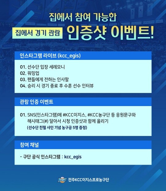 본 이벤트는 구단 공식 SNS계정(인스타그램 : kcc_egis)을 통해 확인 및 참여할 수 있다.