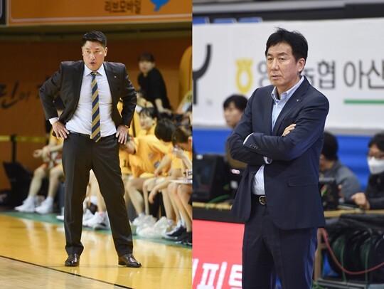 사진 설명 1 = 안덕수 KB스타즈 감독-이훈재 하나은행 감독