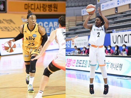 사진 설명 2 = 카일라 쏜튼(청주 KB스타즈)-마이샤 하인스-알렌(부천 하나은행)