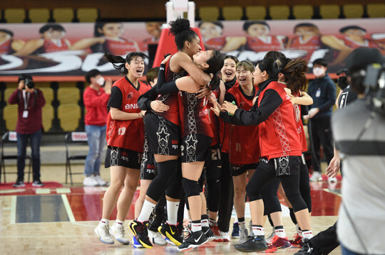 부산 BNK 썸은 8일 부산 금정구 BNK센터에서 열린 하나원큐 2019~2020 여자프로농구 정규리그에서 청주 KB스타즈를 78-60으로 꺾었다. 10승 17패. 용인 삼성생명(9승 18패)을 제치고, 단독 5위에 올랐다.