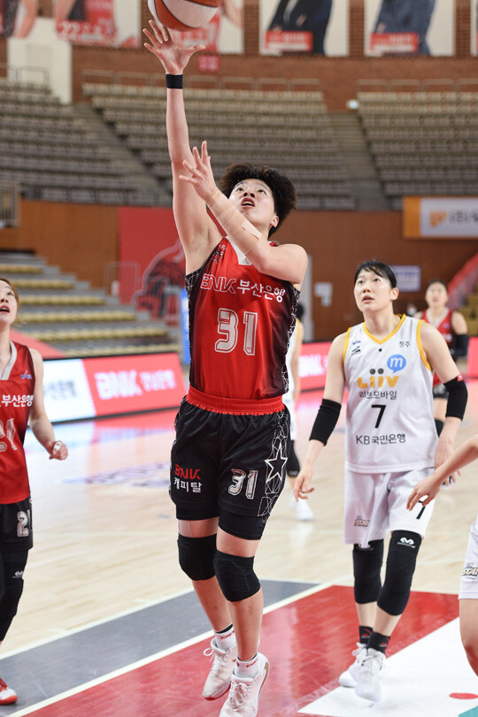 BNK는 경기 전부터 호재를 안고 있었다. KB스타즈 박지수(198cm, C)가 허리 부상으로 부산에 동행하지 않았기 때문이다.