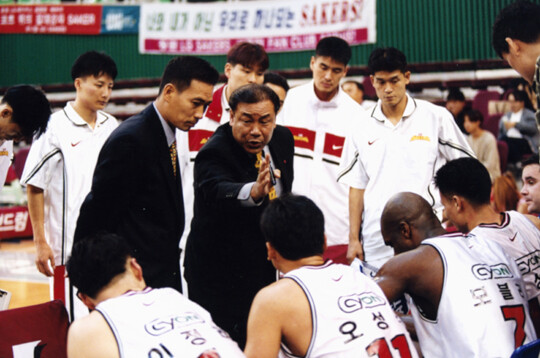사진 설명 1 = 2000~2001 시즌. 김태환 LG 감독이 작전 지시를 하고 있다.