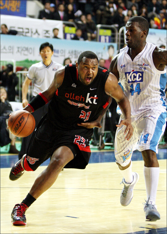 kt의 4강 플레이오프 상대는 전주 KCC였다. KCC는 전태풍(서울 SK)-하승진-테렌스 레더-아이반 존슨을 보유한 팀. kt보다 많은 해결사와 압도적인 빅맨을 보유했다. KCC는 kt에 쉽지 않은 팀이었다.
