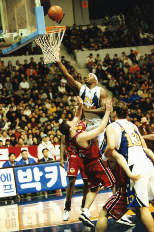 수원 삼성(현 서울 삼성)은 2000~2001 정규리그 1위(34승 11패)를 차지했다. ‘주희정-문경은-이규섭-아티머스 맥클래리-무스타파 호프’ 등 주전 라인업이 완벽했고, 강혁과 노기석, 박상관 등 백업 멤버도 탄탄했다. 화려한 라인업을 앞세운 삼성은 KBL 입성 후 처음으로 챔피언 결정전에 나섰다. 첫 통합 우승도 노렸다.